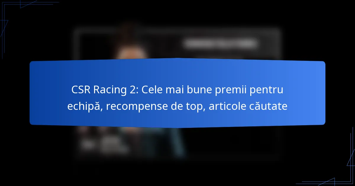 Cele mai bune premii pentru echipe în CSR Racing 2 oferă avantaje semnificative în gameplay, îmbunătățind performanța și experiența jucătorului. Jucătorii ar trebui să prioritizeze recompensele care nu doar îmbunătățesc mașinile lor, ci contribuie și la progresia pe termen lung în joc.